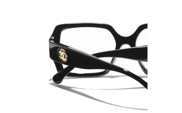 Les lunettes optiques sont livrées avec des verres de démonstration imprimés d'une inscription « CHANEL ».
