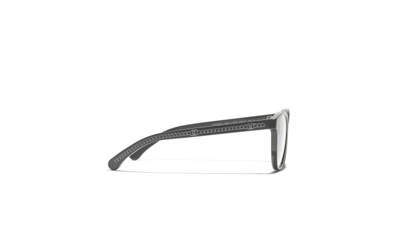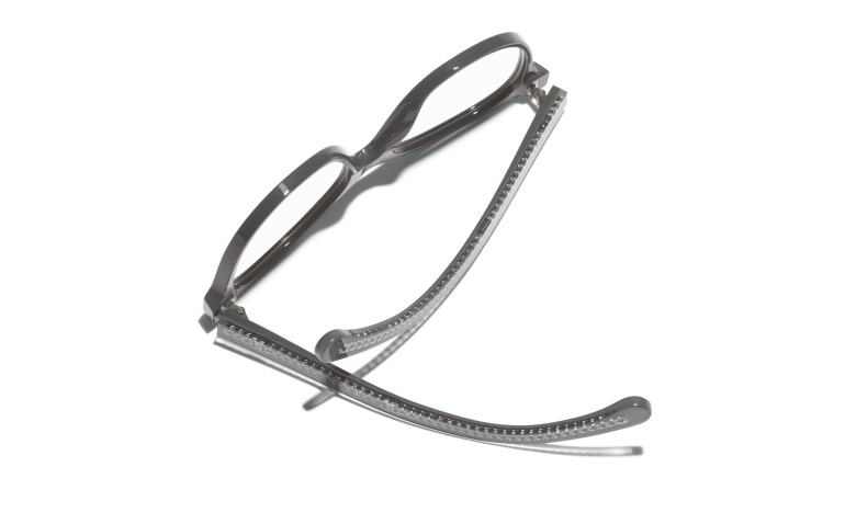 Les lunettes optiques sont livrées avec des verres de démonstration imprimés d'une inscription « CHANEL ».