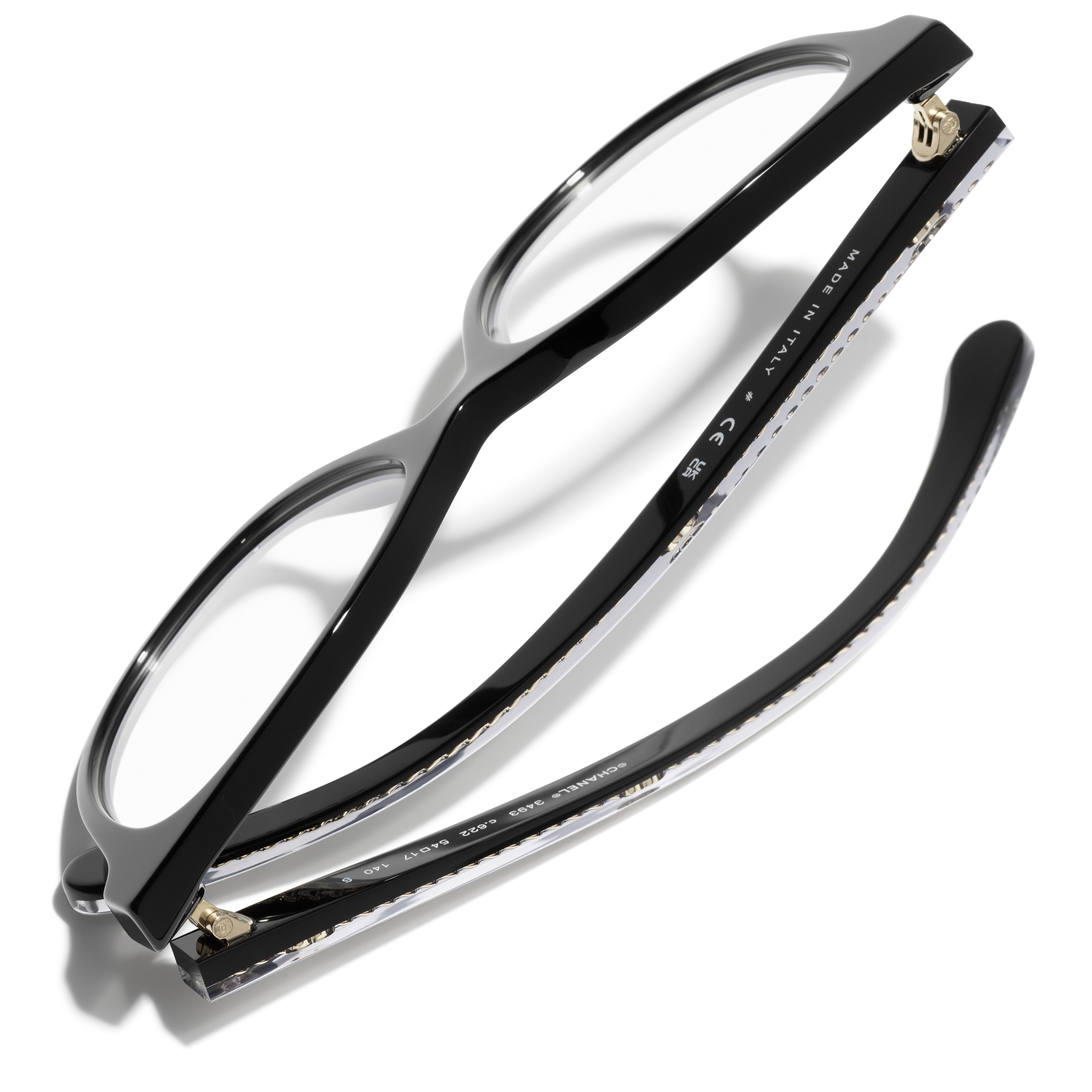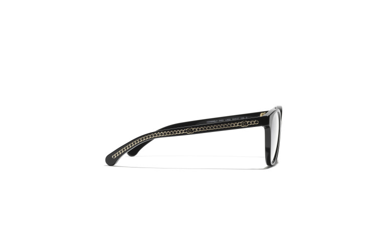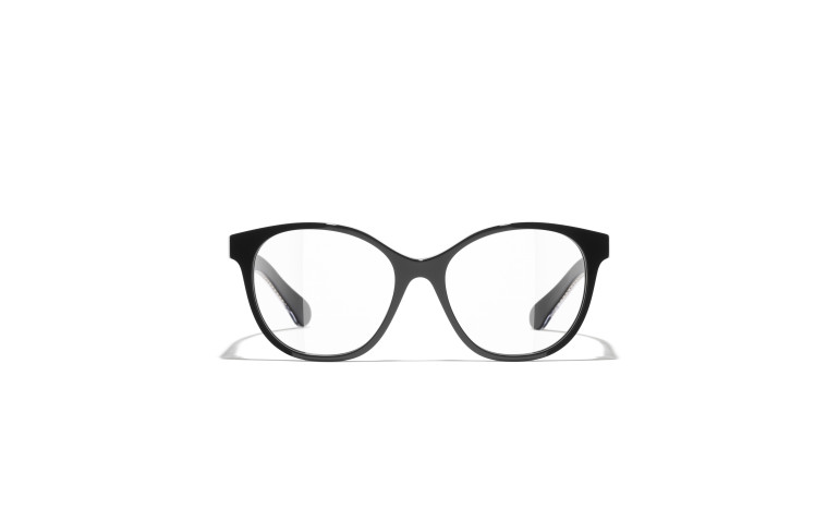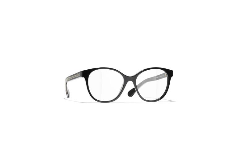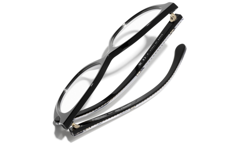 Les lunettes optiques sont livrées avec des verres de démonstration imprimés d'une inscription « CHANEL ».