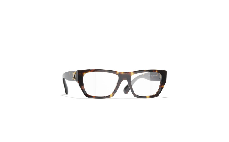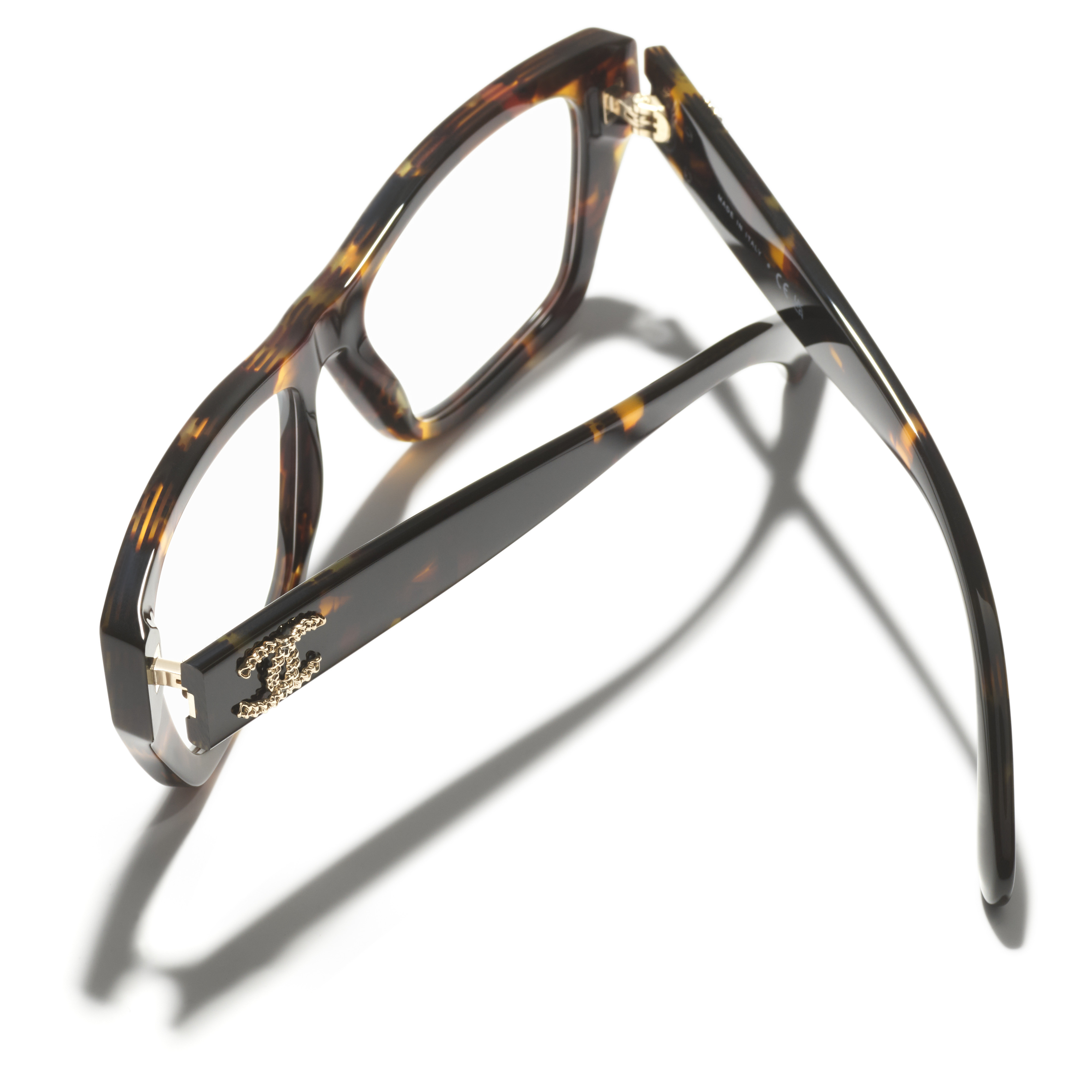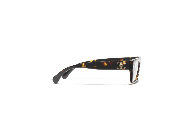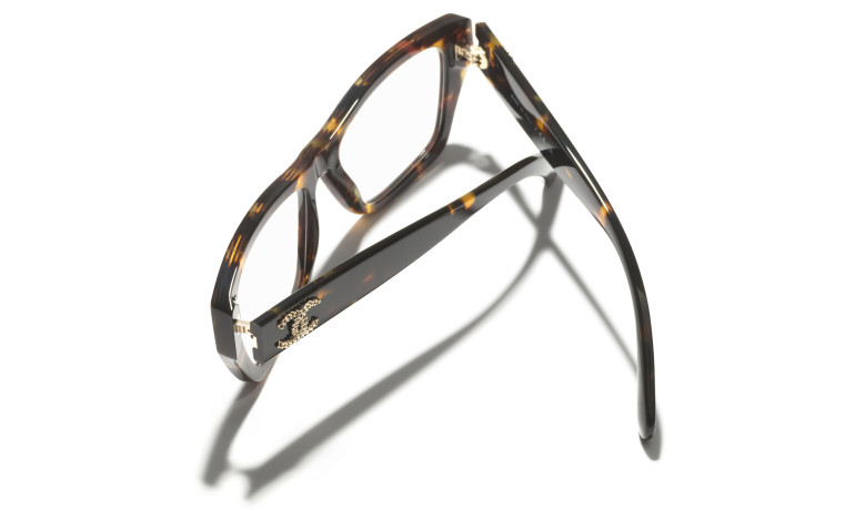 Les lunettes optiques sont livrées avec des verres de démonstration imprimés d'une inscription « CHANEL ».