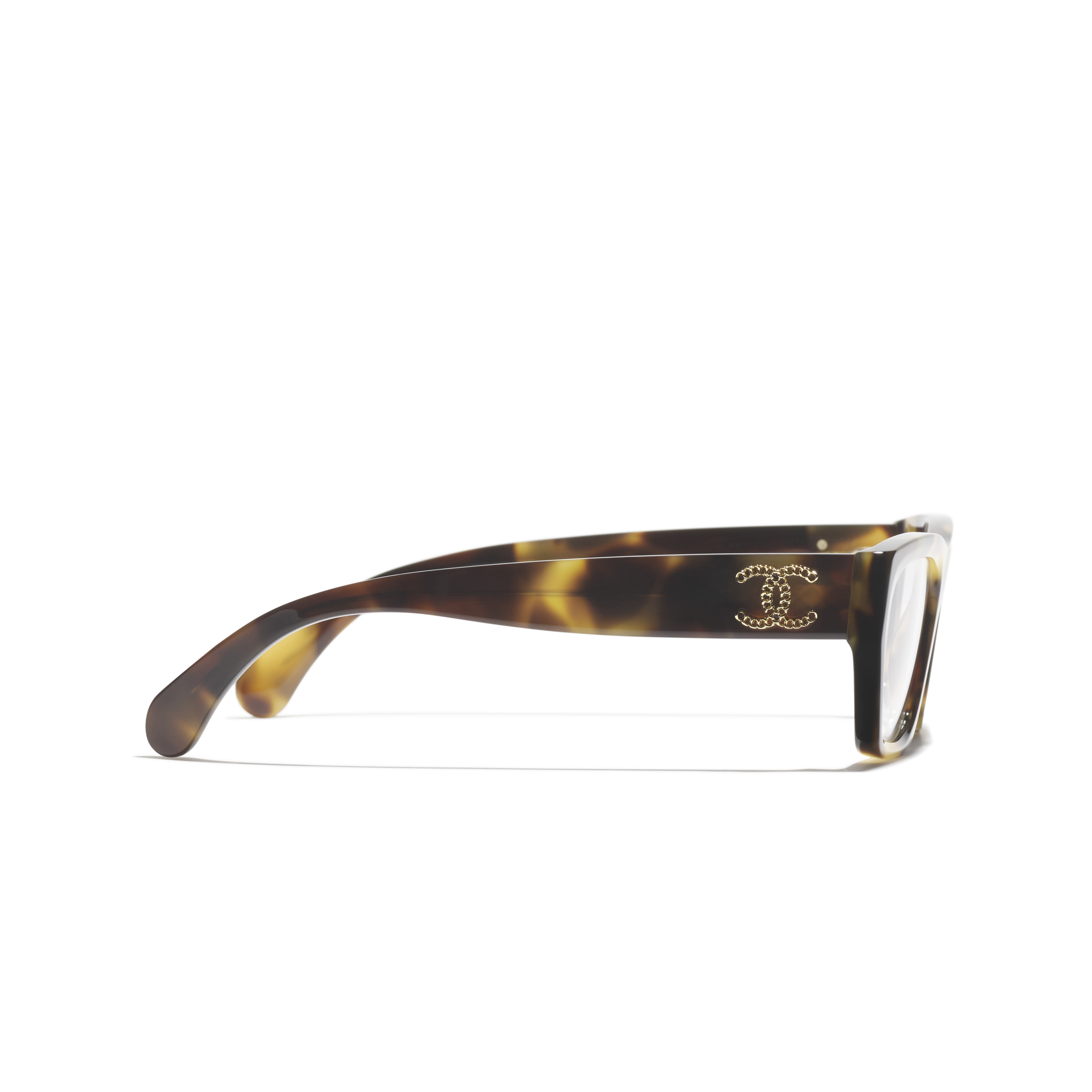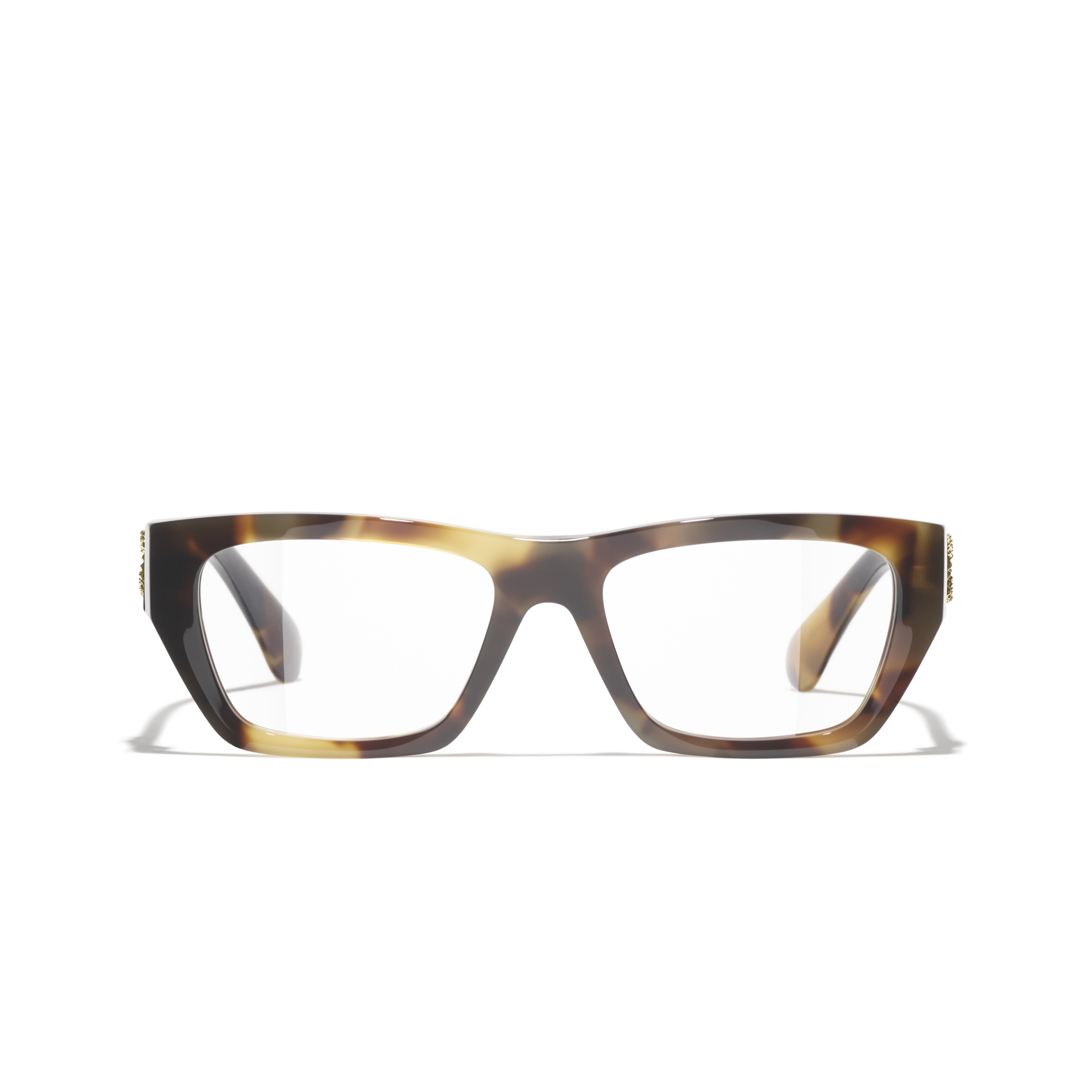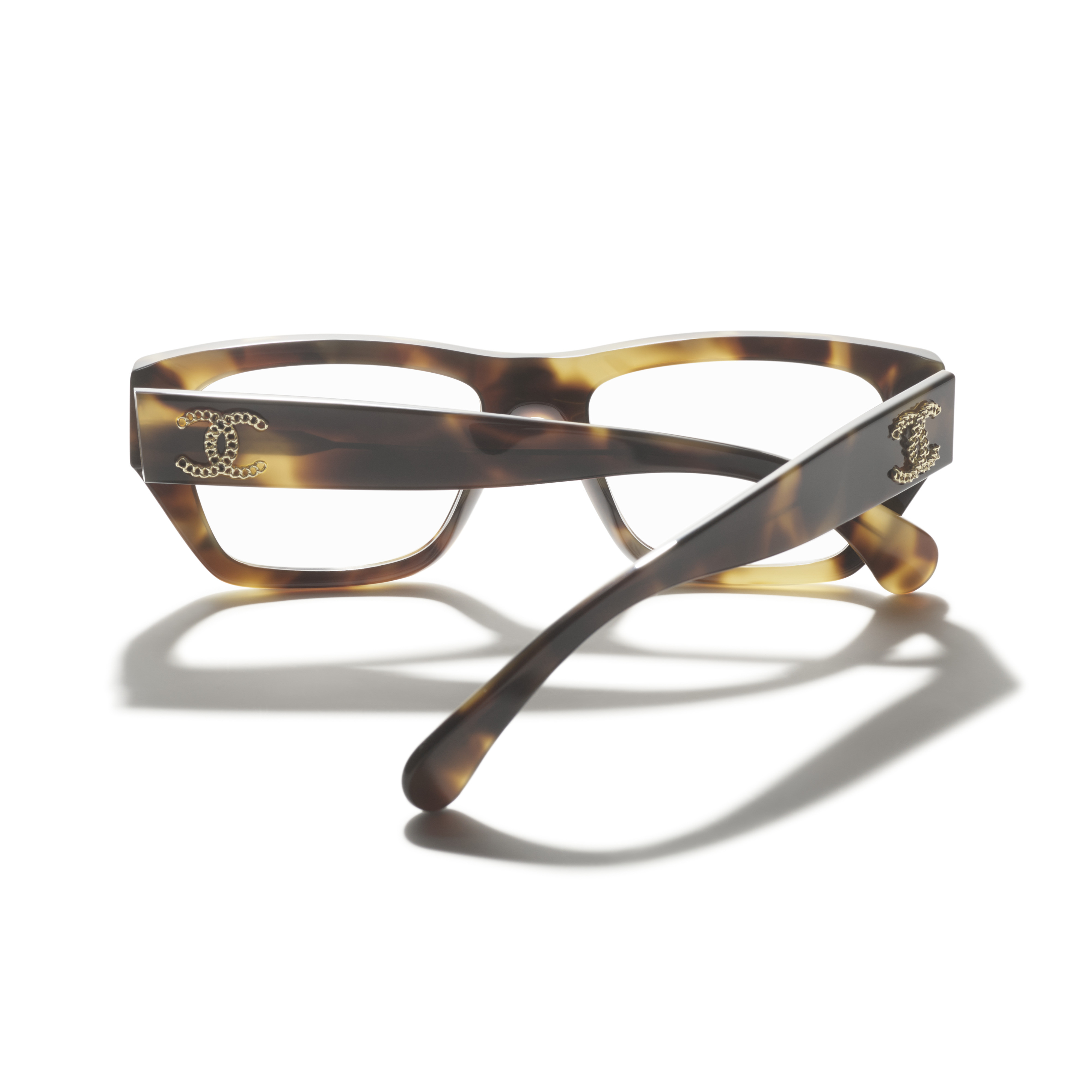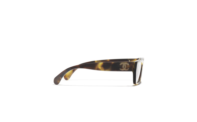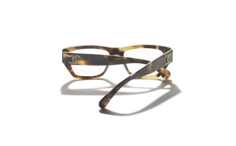 Les lunettes optiques sont livrées avec des verres de démonstration imprimés d'une inscription « CHANEL ».