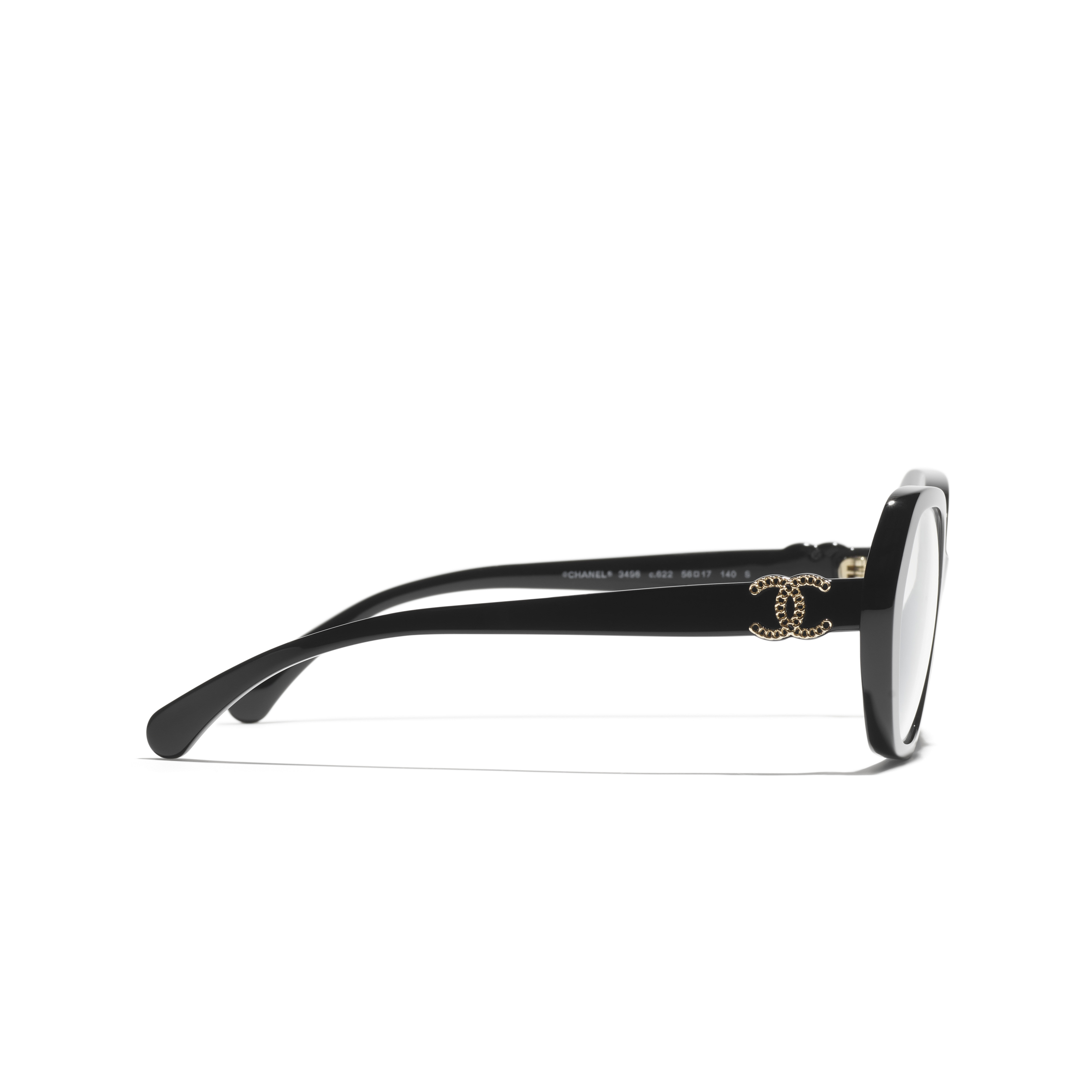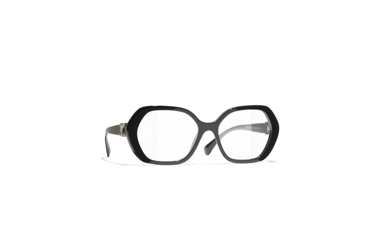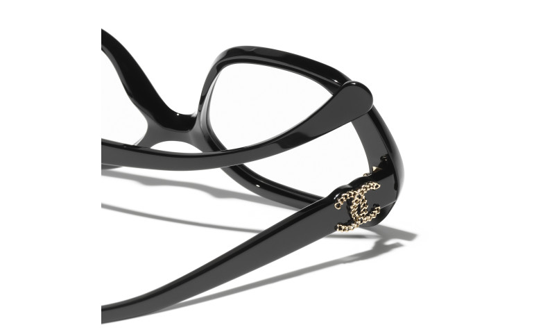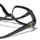 Les lunettes optiques sont livrées avec des verres de démonstration imprimés d'une inscription « CHANEL ».