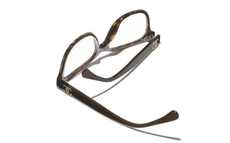 Les lunettes optiques sont livrées avec des verres de démonstration imprimés d'une inscription « CHANEL ».