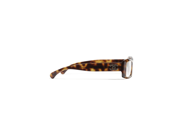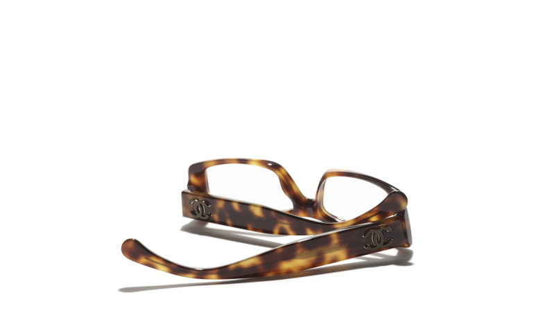 Les lunettes optiques sont livrées avec des verres de démonstration imprimés d'une inscription « CHANEL ».