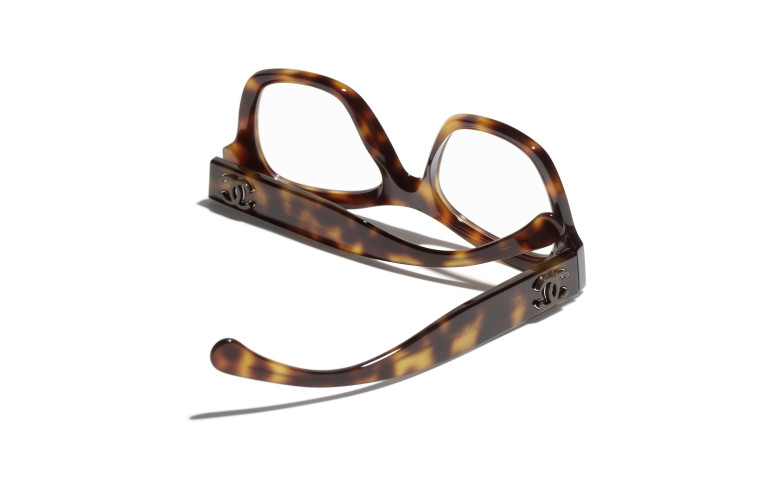 Les lunettes optiques sont livrées avec des verres de démonstration imprimés d'une inscription « CHANEL ».